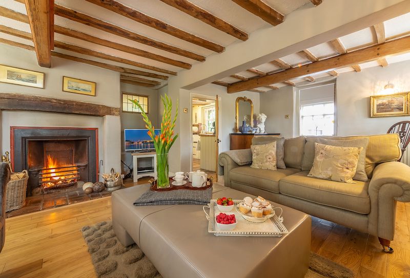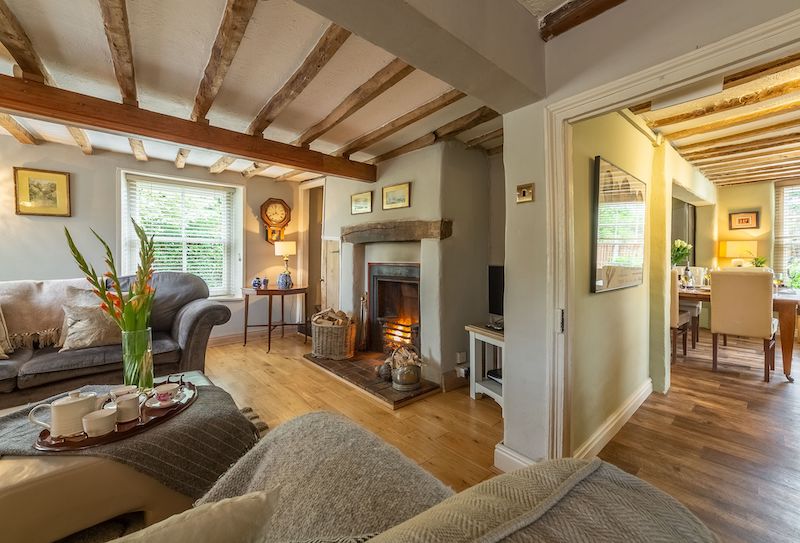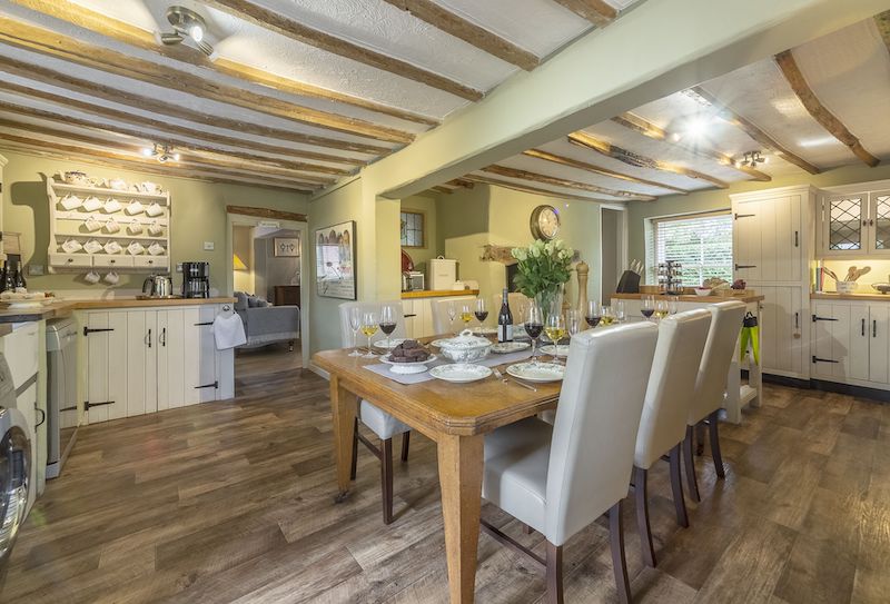Enter into the beautiful reception hall leading to a spacious beamed sitting room with inglenook fireplace and cosy open fire, along with Sky TV. There are two further televisions, one in the library/snug with Apple TV; and another in the luxury master suite, which occupies the entire second floor. The kitchen and dining area are particularly spacious and well-equipped and perfect for entertaining and complemented by the wood burning stove.